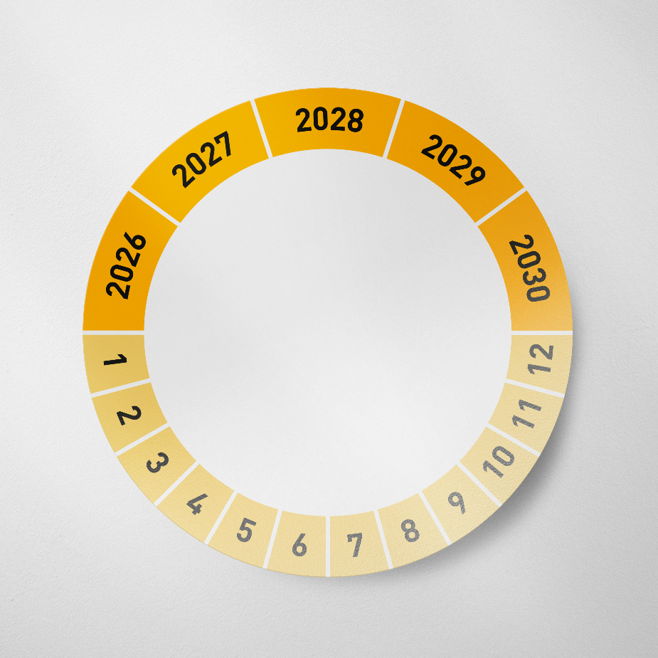 Op zoek naar een ronde keuringssticker zonder tekst of logo maar met de verplichte jaartallen? Kies dan uit een van de 7 verschillende kleuren voor jouw ronde keuringsstickers. Deze keuringsstickers bevatten alleen de jaartallen die verplicht zijn op keuringsstickers in jouw favoriete kleur.