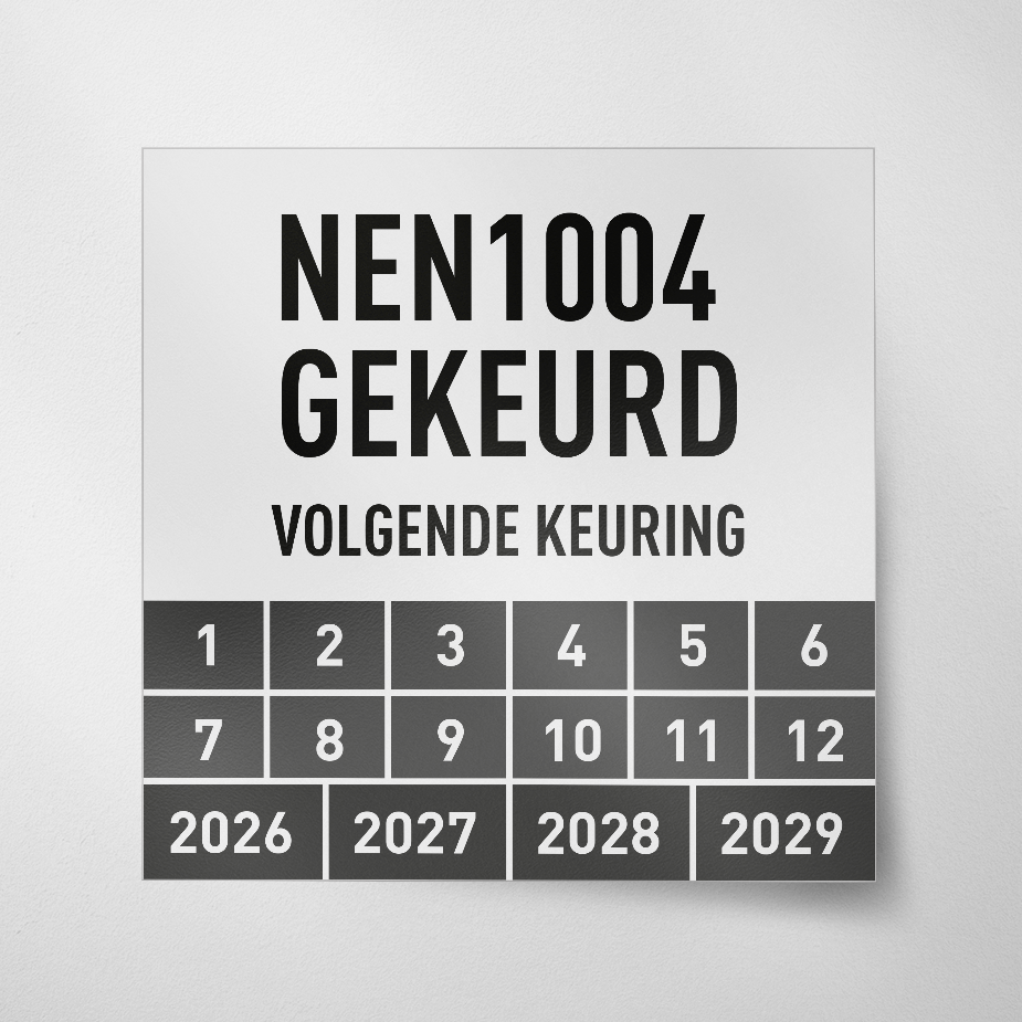 De meest gebruikte keuringssticker met logo NEN 1004.