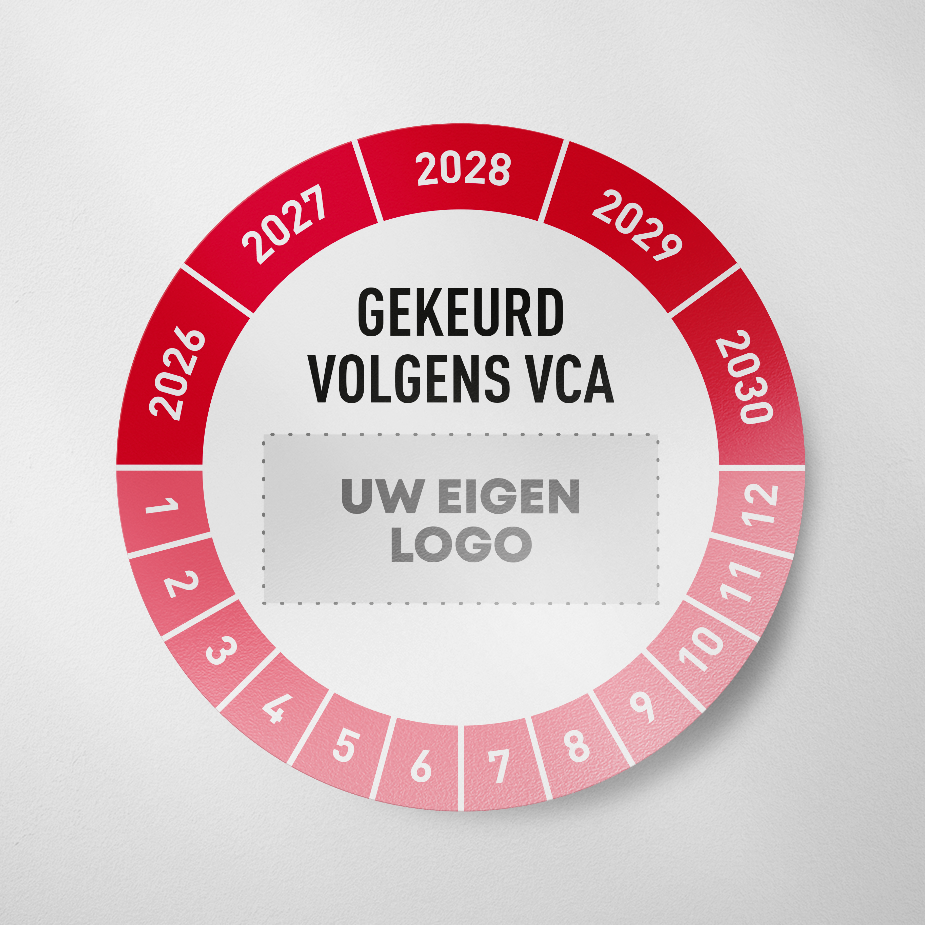 De meest gebruikte keuringssticker VCA gekeurd met eigen logo.